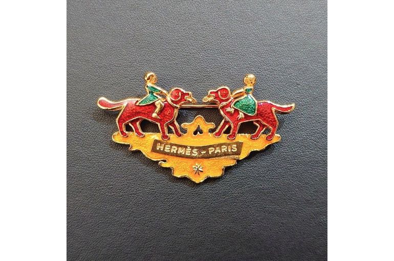 HERMES エルメス 七宝焼 ブローチ 犬と少女 女の子 男の子 犬 ヴィンテージ