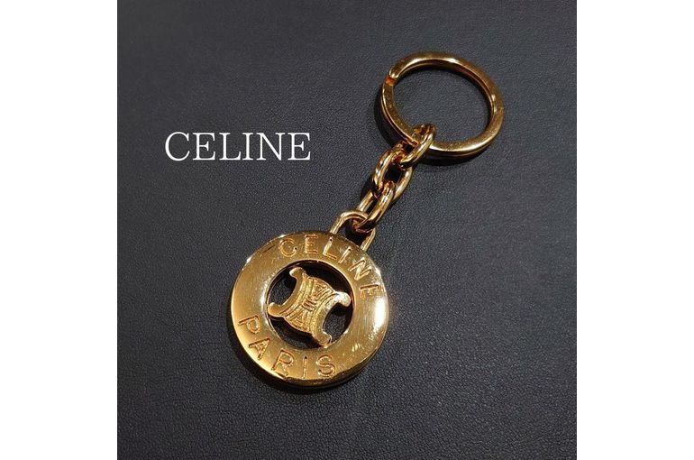ゴールドのCELINEサークルロゴとブラゾンが目を惹く、キーホルダー・キーリングです。